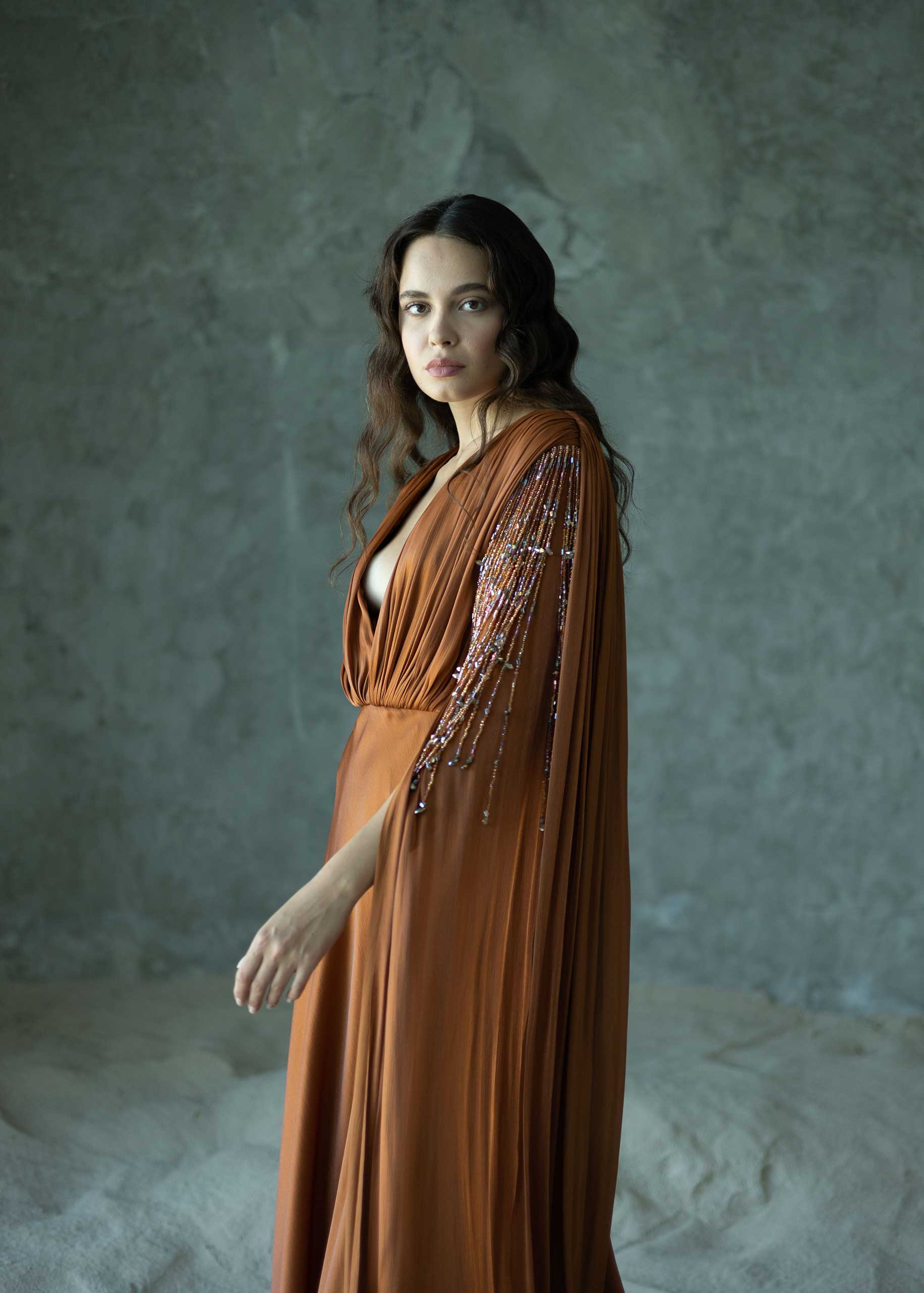 Burnt Orange Chiffon Occasion Dress by Nishida Shaheen