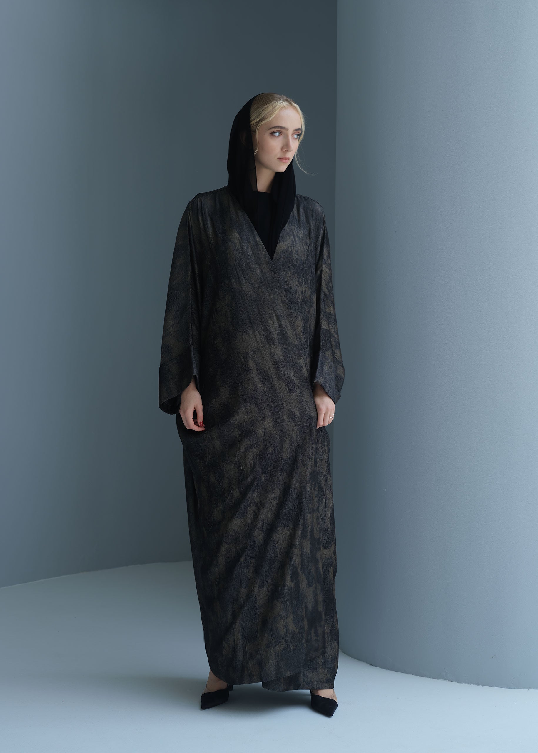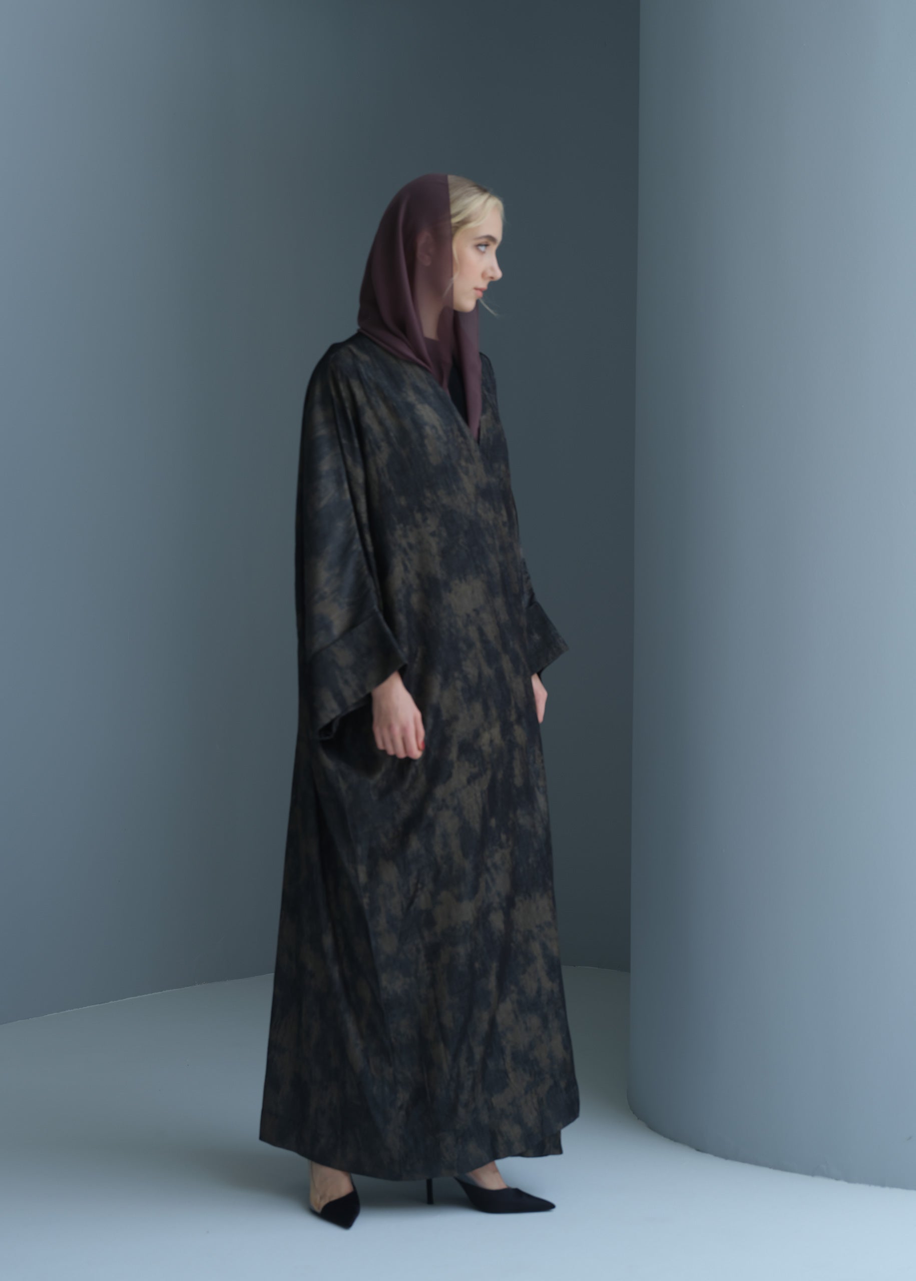This versatile abaya is crafted from cotton-linen, ensuring comfort and easy wear.