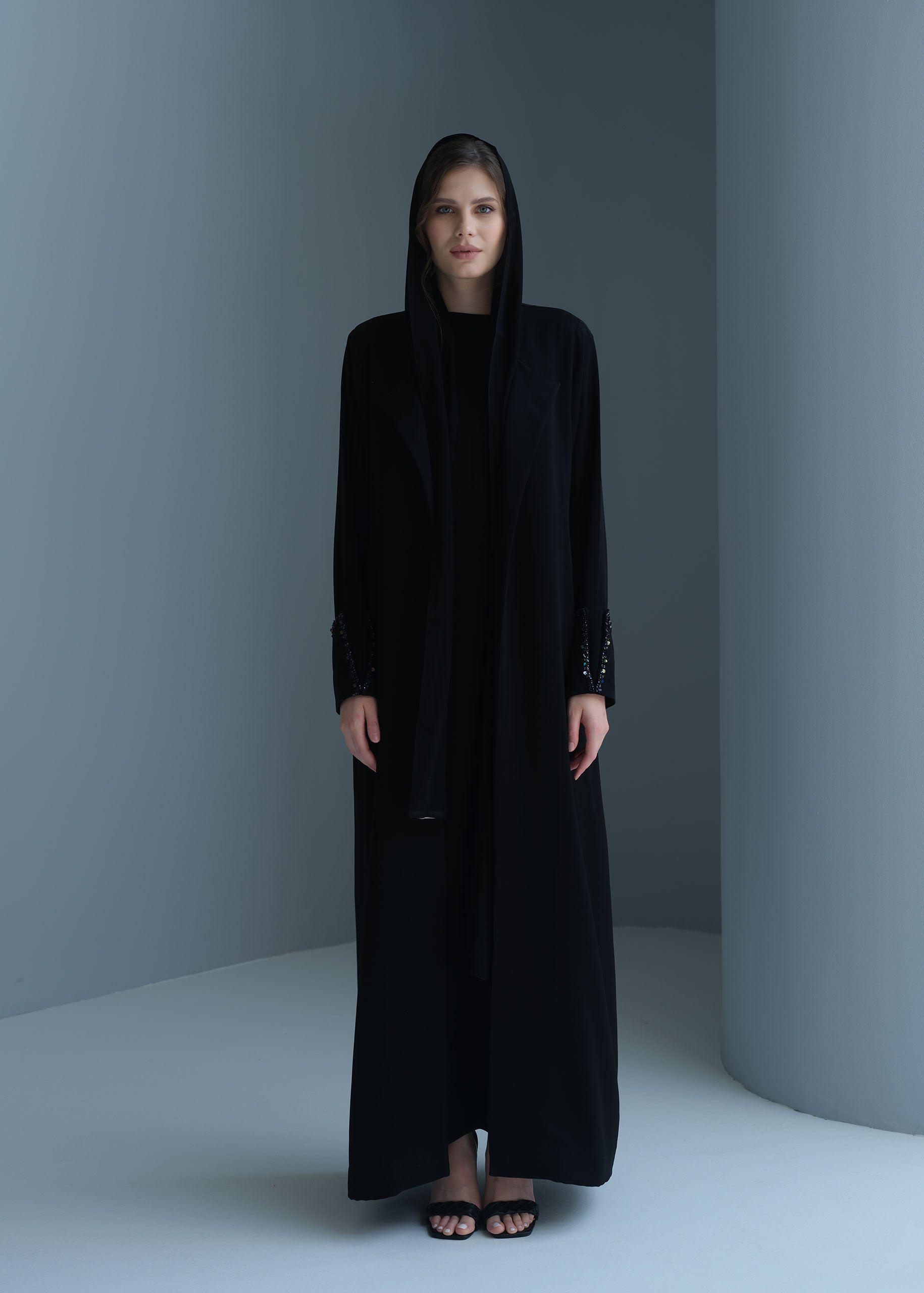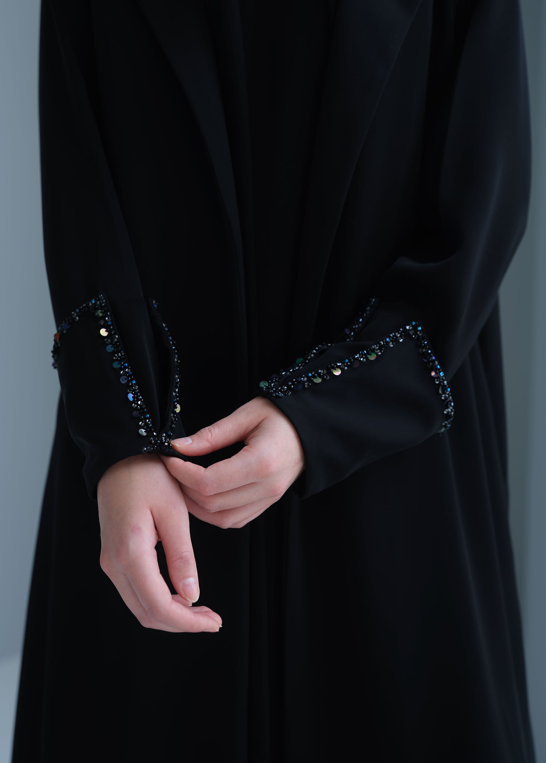 This abaya exudes sophistication and is a statement piece for any occasion. A must-have addition to your collection.